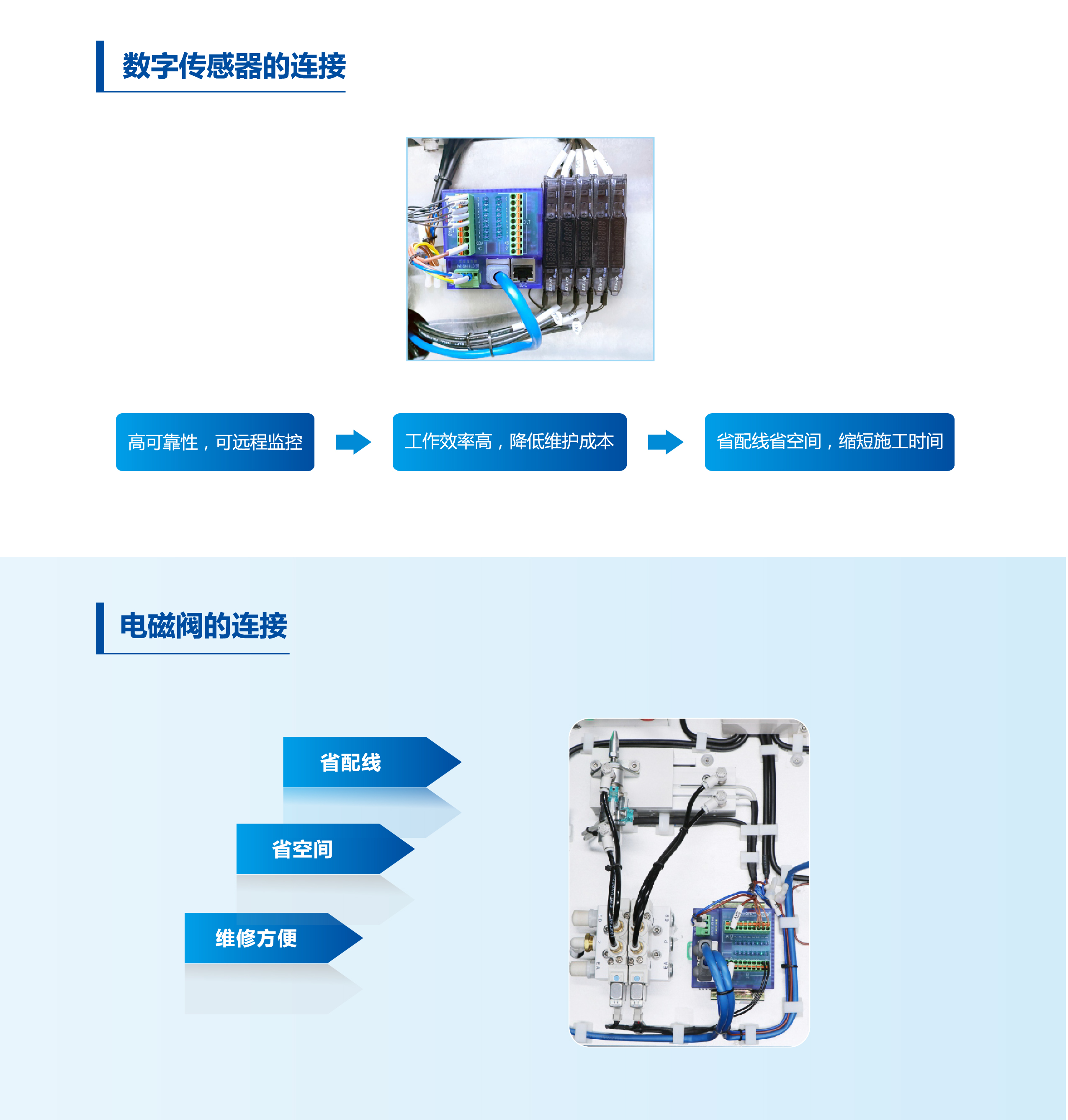 傳送線、機(jī)器人配線、數(shù)字傳感器連接、電磁閥連接