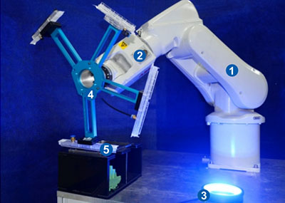 ● 使用6軸機(jī)器人四吸頭雙相機(jī),節(jié)省2個(gè)人工。