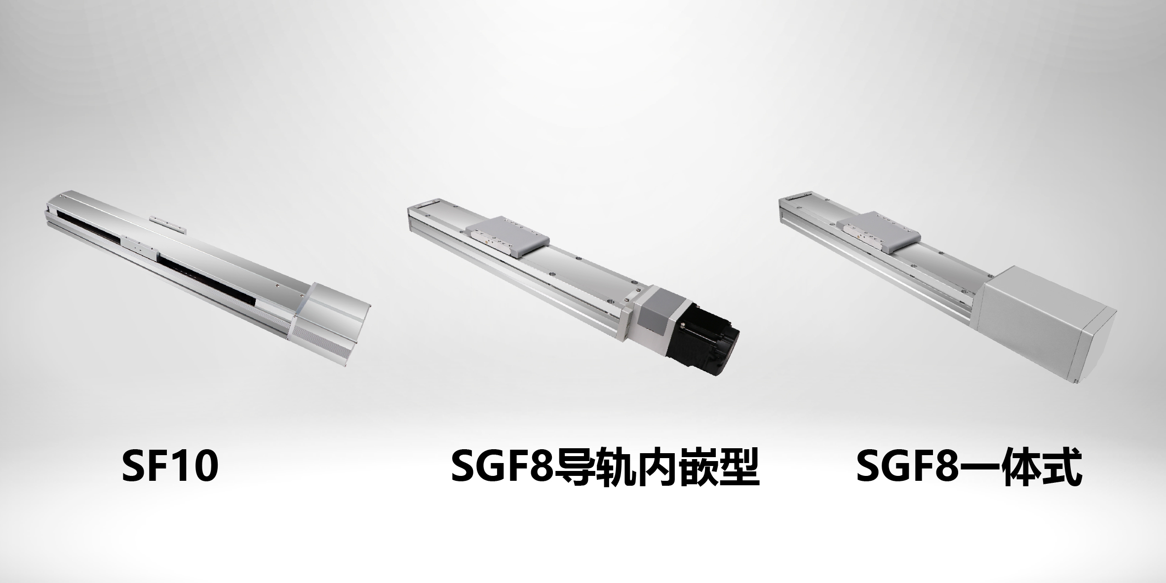SF標準絲桿型、SGF導軌內嵌型以及全新升級的內置驅控一體型 SGF8。