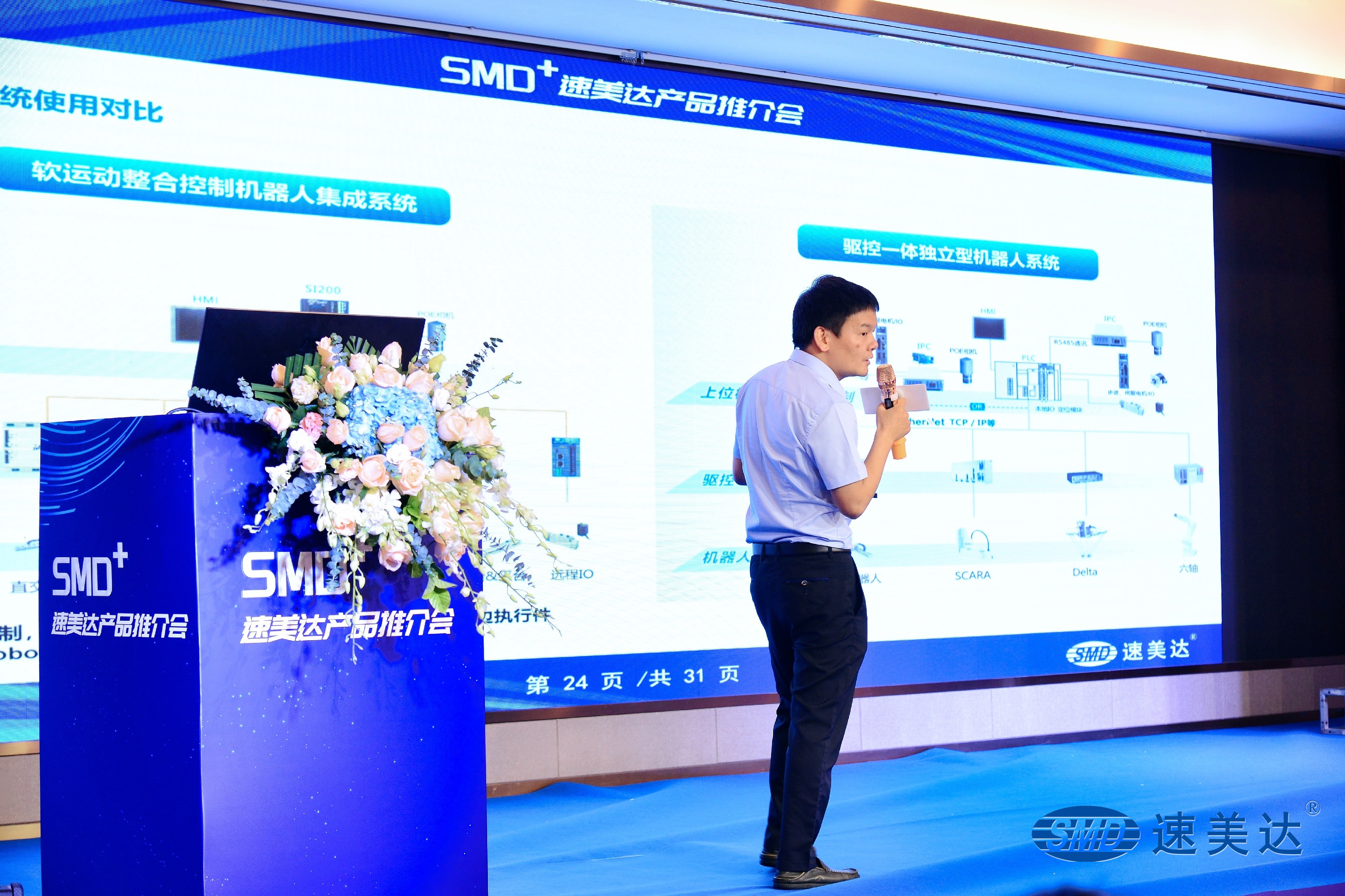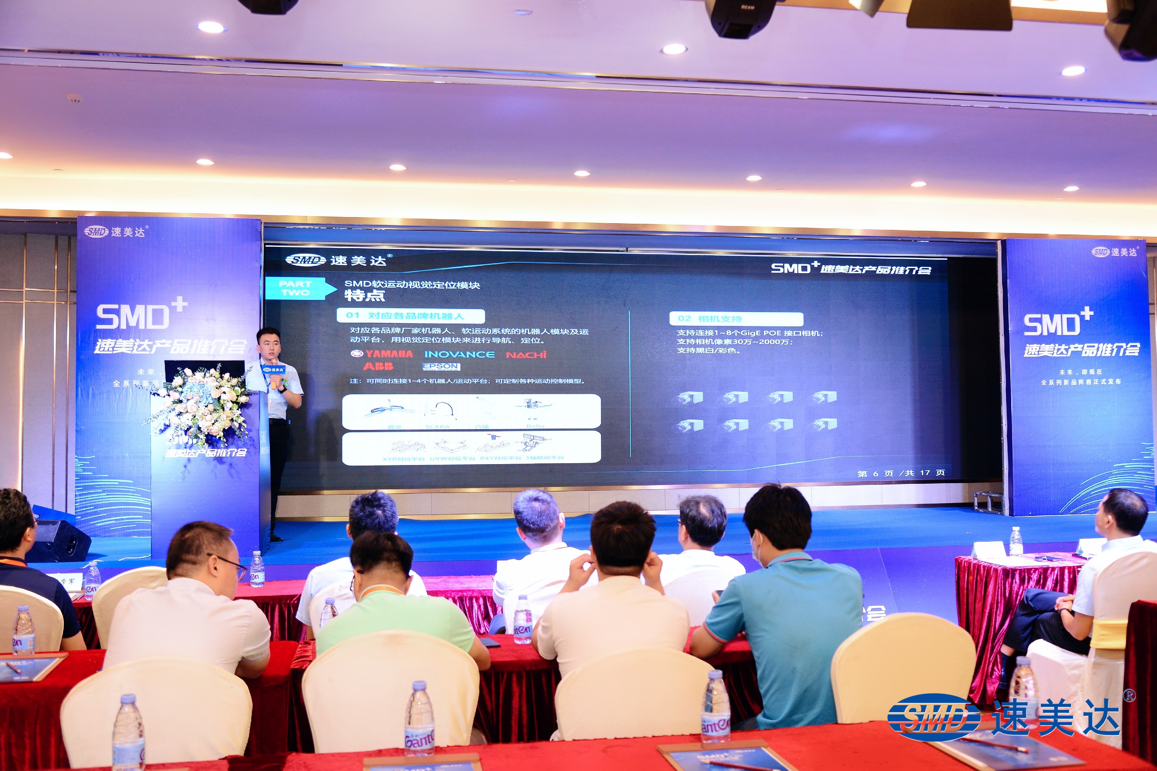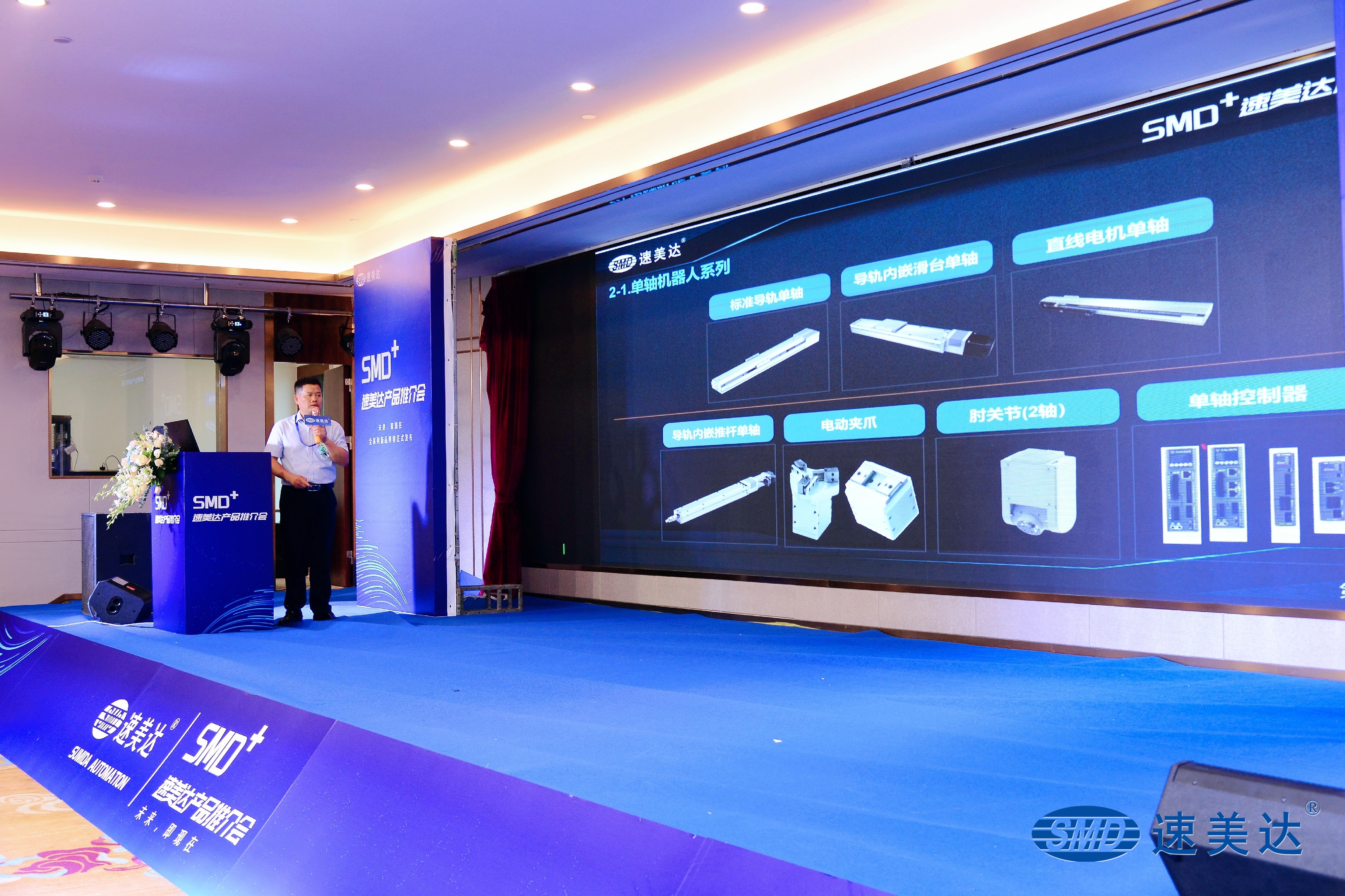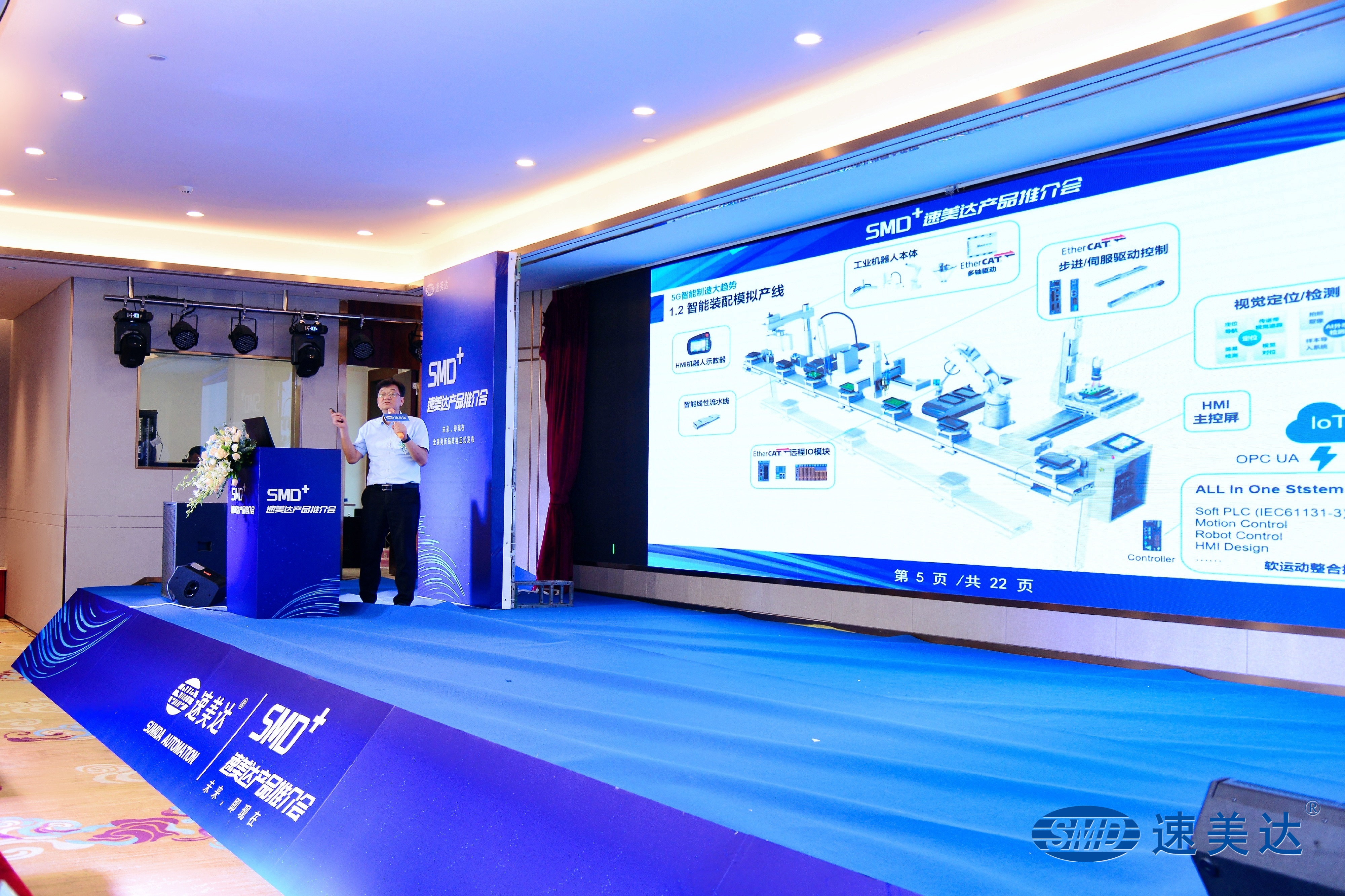 積淀22年,速美達(dá)全新產(chǎn)品上市。SMD-Studio軟運(yùn)動整合控制系統(tǒng)、閉環(huán)步進(jìn)單軸機(jī)器人、AC交流伺服單軸機(jī)器人、SV系列新版通用視覺檢測系統(tǒng)在產(chǎn)品推介會現(xiàn)場正式發(fā)布。