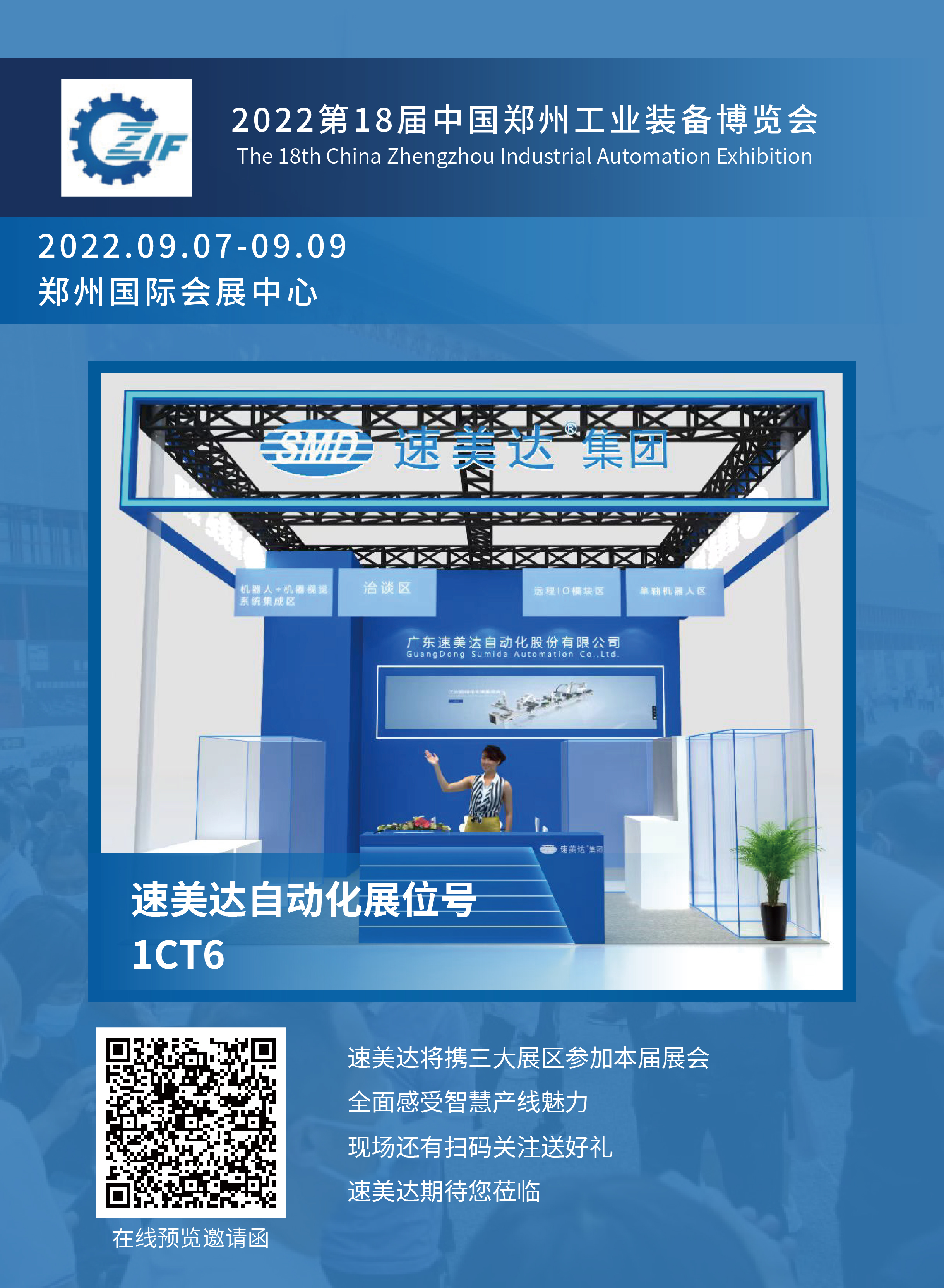 速美達(dá)將在鄭州國際會(huì)展中心1C-T6展位期待您的光臨,本次速美達(dá)展位依據(jù)展品類型分為三大區(qū)域,邀您共同探索智慧產(chǎn)線改造之路。