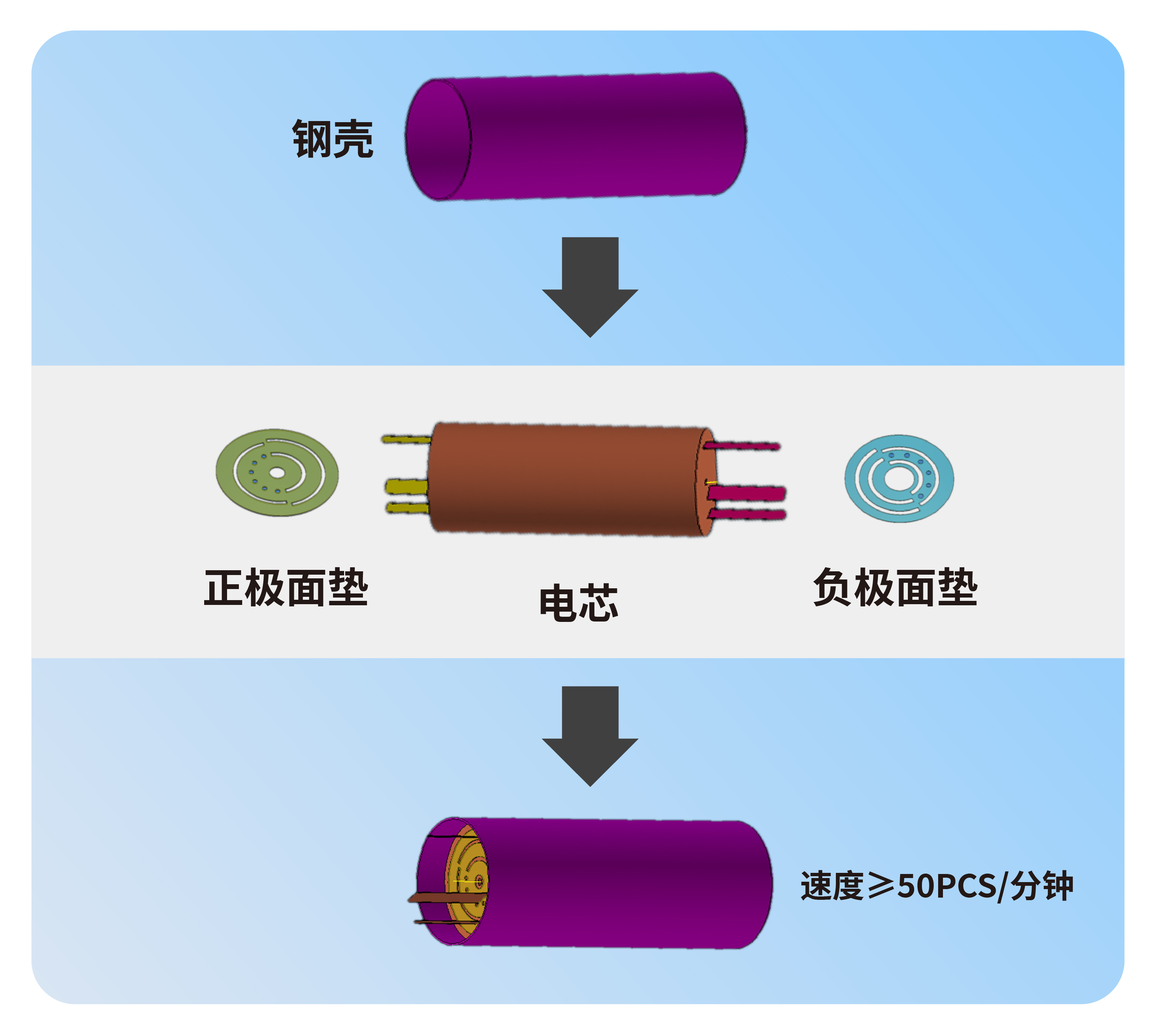 隨著動(dòng)力電池生產(chǎn)擴(kuò)大規(guī)模和提高效率,電池企業(yè)對極耳定位檢測需求增加,相應(yīng)地對視覺成像的質(zhì)量和速度也提出了更高的要求。速美達(dá)不斷深入了解極耳各個(gè)工序定位檢測難點(diǎn),針對圓柱電池的電芯入殼段組裝,帶來極耳視覺定位與折彎AI檢測視覺系統(tǒng)。